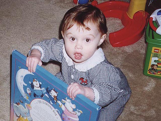 Sarah with one of her favorite possessions - a boxed set of tiny books.