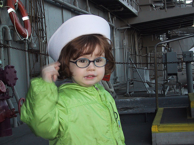 Sarah on board the U.S.S. Hornet.