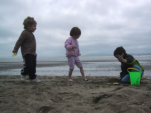 Sarah frolics with her friends Alexander and Sean during her fourth birthday party.