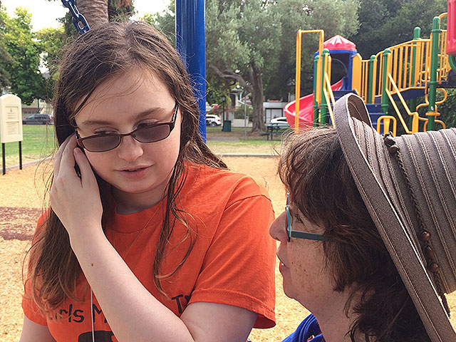 On a "forced march" to the park.