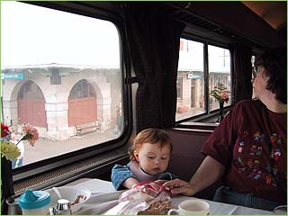 We began on Amtrak's Starlight Express, a 24 hour ride from Oakland to Seattle. Here we share an elegant brunch in the dining car.