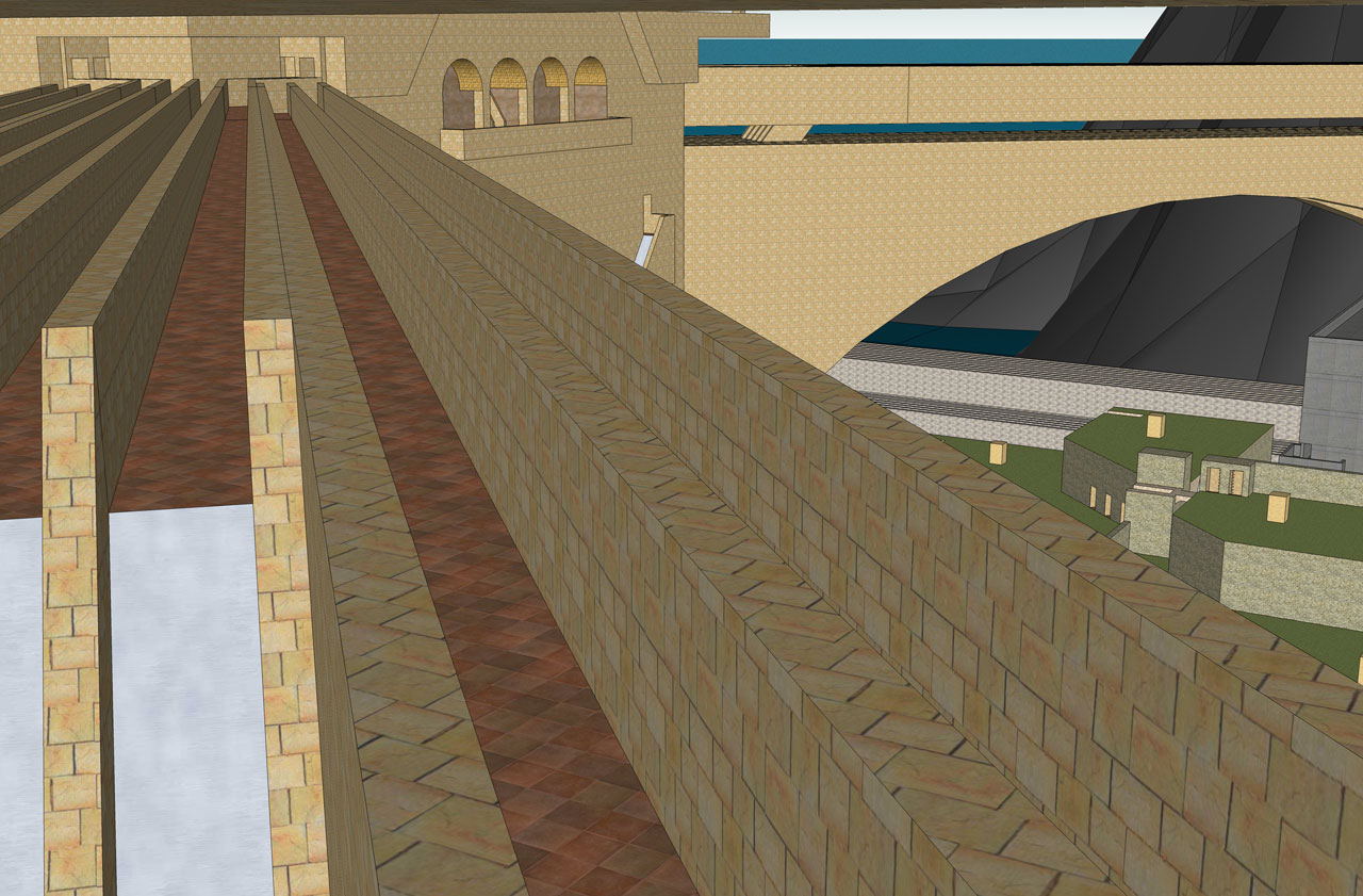 down and through a bastion, back between the decks of a bridge, down and around again.