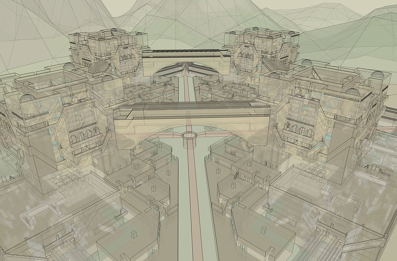 Totality provides the first fly-through of the assembled monastery situated in its terrain.