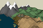centered in an artificial landscape. The view on the cover shows an approach from the sea, with the starmaze