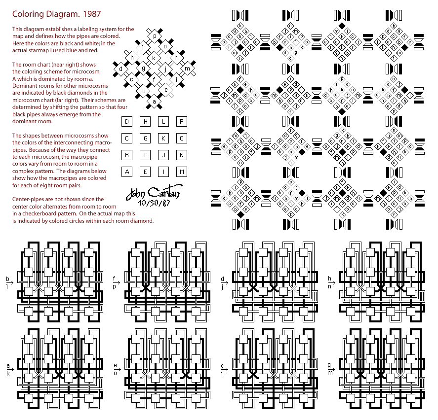 corresponding room in another microcosm. In practice I had to divide each macropipe into four pipes,