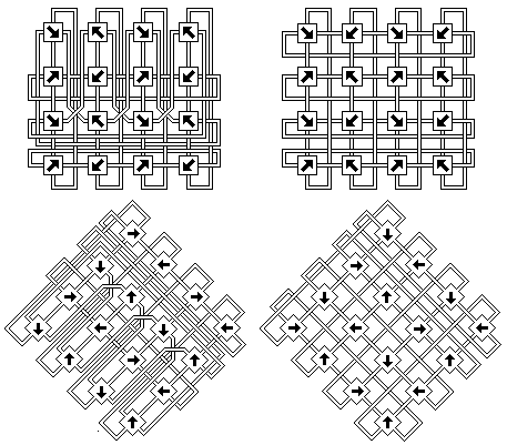 that the tiny arrows inside the east and west yang cells are reversed between the two screens.